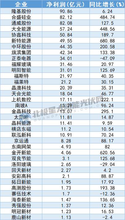 據北極星太陽能光伏網統(tǒng)計,2021年光伏上市企業(yè)凈利潤在1億元以上的約有36家,其中凈利潤在50億元以上的企業(yè)共有5家。