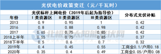 2019年-2020年,光伏邁入競、平價過渡階段,集中式實行指導電價。