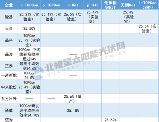 光伏電池、組件的技術革新是促進光伏不斷降本增效的原動力,如今光伏技術路線面臨由p向n轉型的關鍵期,重回效率主賽道已成電池企業(yè)的共識,如今多家企業(yè)在HJT和Topcon電池效率創(chuàng)下新高。