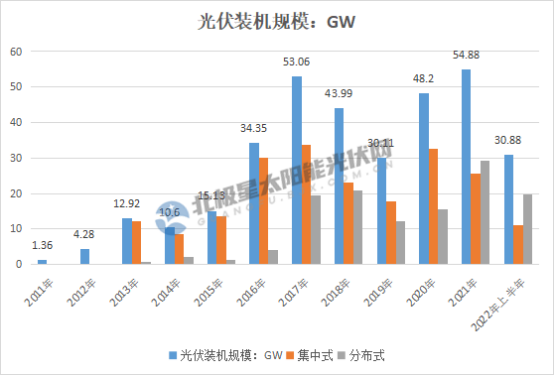 2022年上半年,我國光伏新增裝機規(guī)模達到30.88GW,根據中國光伏行業(yè)協(xié)會預測,2022全年光伏新增裝機有望實現(xiàn)85-100GW,邁向新階段。